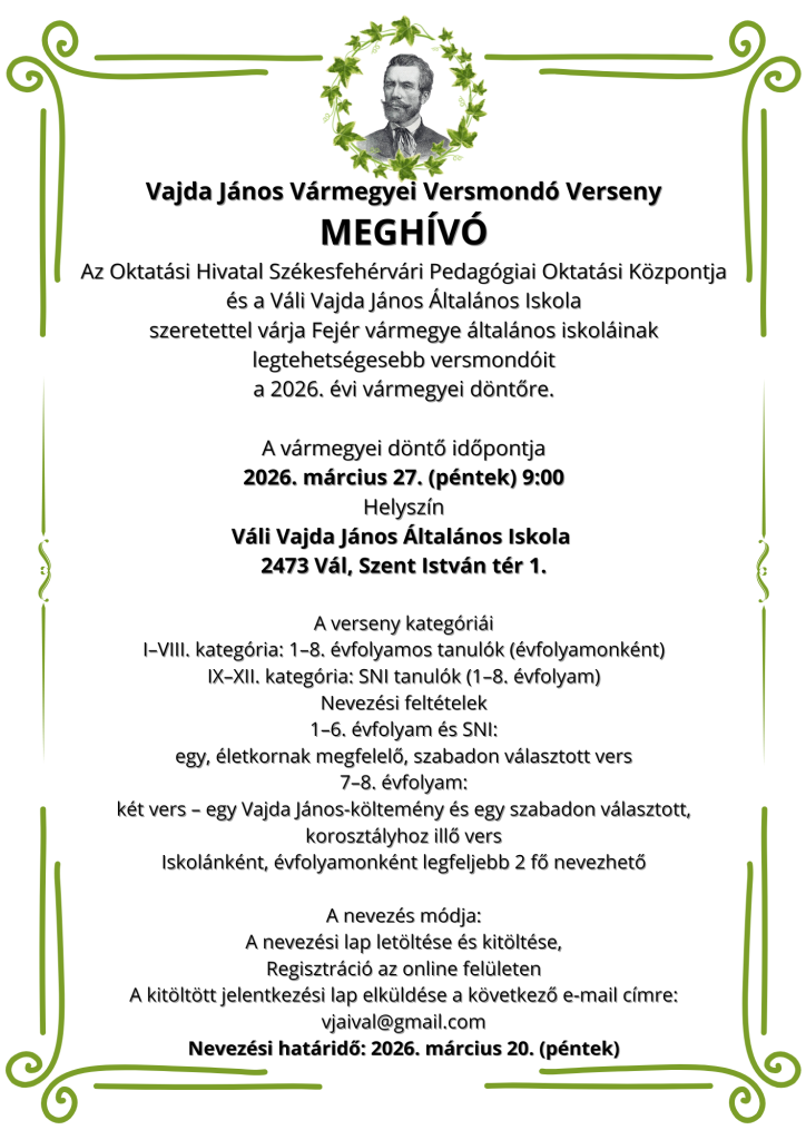A Váli Vajda János Általános Iskola 7.a és 7. b osztálya elnyerte a HAT-KP-1-2025/1-000411 számú „Technikai és tudományos kincskereső Csallóközzel és Selmecbányával” elnevezésű kirándulást, 2026. április 14. naptól – 2026. április 17. napig.